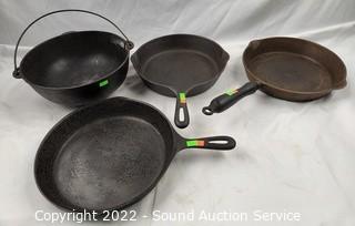 Lot #0193: 3 Cast Iron 10" Skillets & Scotch Bowl