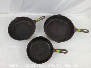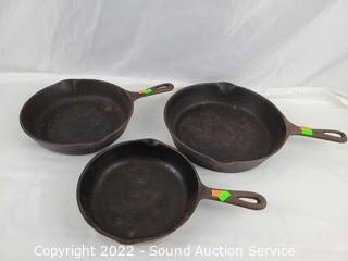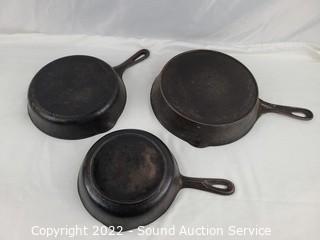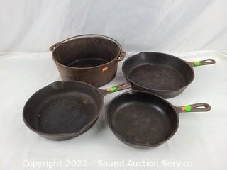 Lot #0113: 4pc Vintage Cast Iron Skillets & Dutch Oven