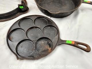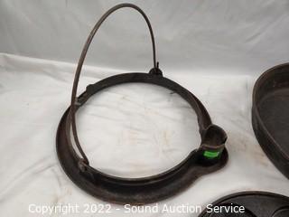 423 Lots including; Firearms (Rifles, Pistols, Ammunition), Recliners, Octagon Folding Poker Table, Maple Finish Bedroom Set, Vintage Red Painted Kitchen Queen, Decorative Wrought Iron Dress Form, Tons of Sewing Fabric, 20th Anniversary Grace Co. Quilting Machine Table, Original Harley Davidson Exhaust System, Gray Fabric 2pc Sectional w/Ottoman, Nice Grey Fabric Sofa, White Painted Hall Tree Entryway Bench, Vintage Monarch Malleable Cast Iron Stove, Antique Koken Cast Iron & Leather Barber's Chair, Green Painted Pine Corner Cabinet, Vintage John Deere Hit-and-Miss Engine, BeerLight, Signs, Stools, Smoker, Lawn Mower, Parts Wash Station, Compressor, Tons of Cast Iron Cookware, Stamps Collection, Barbies, China, Kitchen, Decor, Leather Jackets,Canning Jars & So Much More!!!
