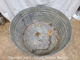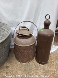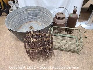 Lot #0399: Galvanized Tub, Rustic Bell, Milk Can & More