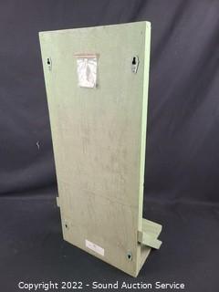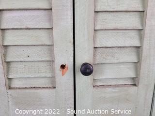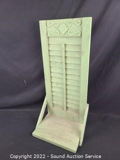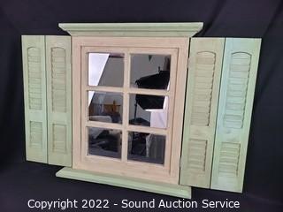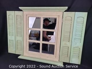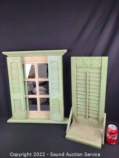 Lot #0129: Green Painted Mirror w/Shutters & Floating Shelf