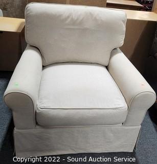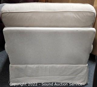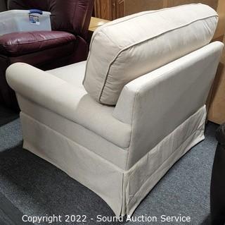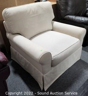 Lot #0003: Ivory Fabric Rocking Swivel Arm Chair
