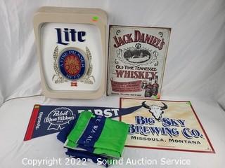 Lot #0098: Tin & Lighted Beer Signs, Pennant & Flag