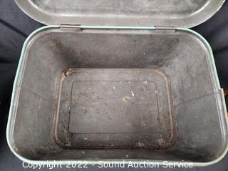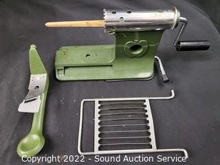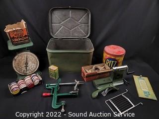 423 Lots including; Firearms (Rifles, Pistols, Ammunition), Recliners, Octagon Folding Poker Table, Maple Finish Bedroom Set, Vintage Red Painted Kitchen Queen, Decorative Wrought Iron Dress Form, Tons of Sewing Fabric, 20th Anniversary Grace Co. Quilting Machine Table, Original Harley Davidson Exhaust System, Gray Fabric 2pc Sectional w/Ottoman, Nice Grey Fabric Sofa, White Painted Hall Tree Entryway Bench, Vintage Monarch Malleable Cast Iron Stove, Antique Koken Cast Iron & Leather Barber's Chair, Green Painted Pine Corner Cabinet, Vintage John Deere Hit-and-Miss Engine, BeerLight, Signs, Stools, Smoker, Lawn Mower, Parts Wash Station, Compressor, Tons of Cast Iron Cookware, Stamps Collection, Barbies, China, Kitchen, Decor, Leather Jackets,Canning Jars & So Much More!!!