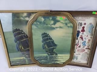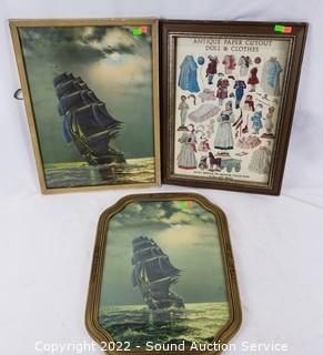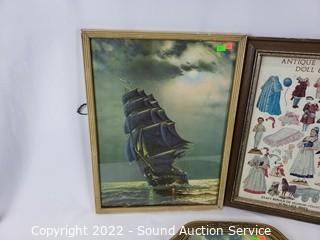 Lot #0280: 2 Ship Prints & 1800's Paper Cut Out Dolls
