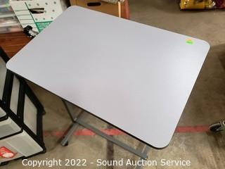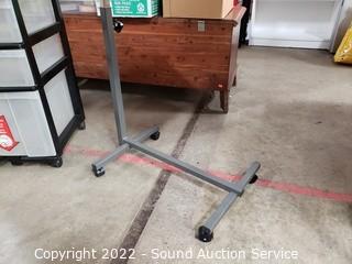 Lot Details: Back bottom of organizer has damage, 27" H x 16" W x 16". Adjustable height laptop cart 26" to 36" H x 24" x 15" surface.