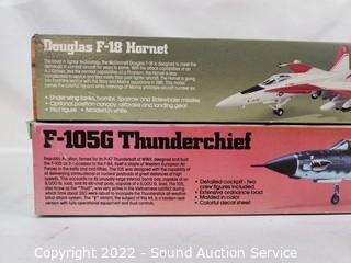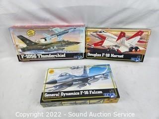 Lot Details: 1/72nd scale. Unknown completeness, 2 contents are sealed, appear complete. Douglas F-18 Hornet, General Dynamics F-16 Falcon, F-105G Thunderchief.