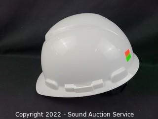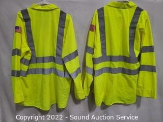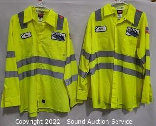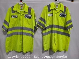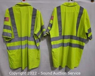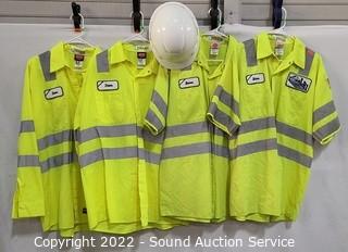 Lot #0303: 4 Hi-Viz Workwear Button Up Shirts & Hard Hat