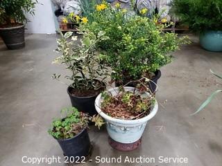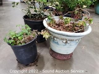 Lot Details: 4" to 22" plants, plastic and glazed pottery planters.