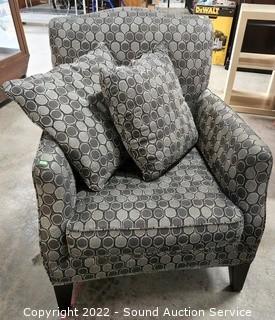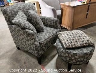 Lot #0029: Gray & Black Arm Chair w/Ottoman
