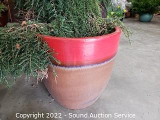 Lot Details: 40" plant, 38" spread, 20" x 20" glazed pottery planter pot.