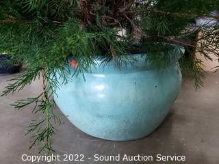 Lot Details: 35" plant, 58" spread, 11" x 15" glazed pottery planter.