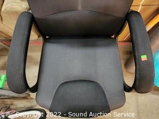 Lot Details: Some wear on the arm rests. 44" H x 26" W x 20" to seat.