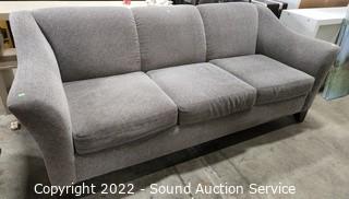Lot Details: Unsure of the brand, tag was removed. Some dirty spots and pet hair, overall great condition. 32" x 84", 19" to seat.