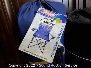 Lot Details: Coleman deluxe oversized chair, Greatland Captain's chair. Some minor wear from use.
