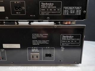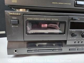 Lot Details: AV Control Receiver SA-GX170, CD Player SL-PG340, Dual Cassette Deck RS-TR232, Fisher speakers 22" H x 13.5" W x 8" D. All work. Comes with some A/V transfer cables.