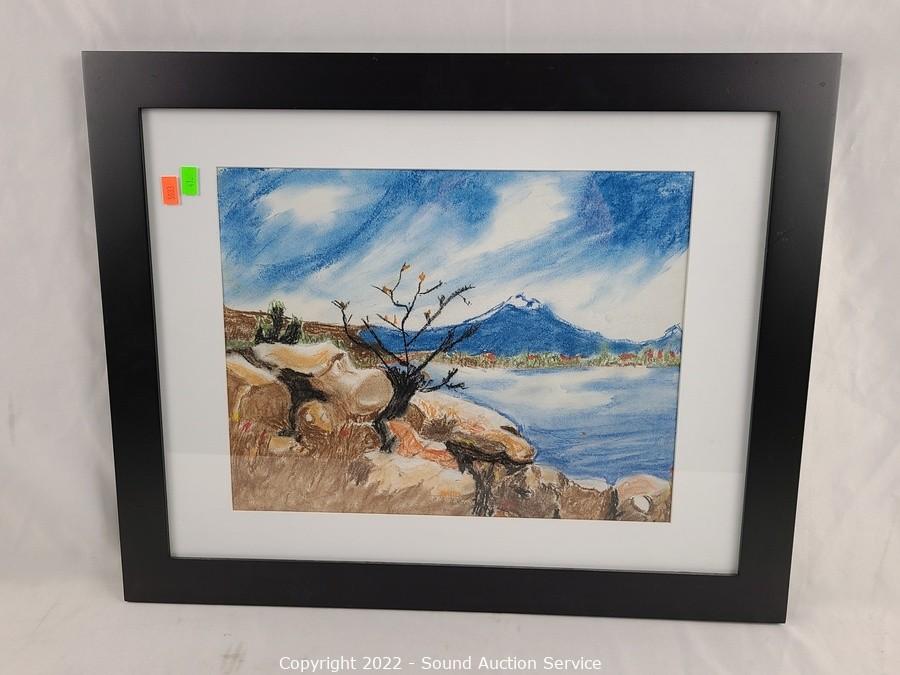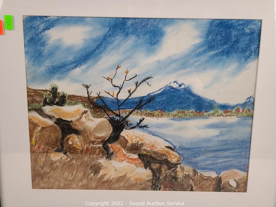 Lot Details: Mountain scene crayon? artwork 16.5" x 21" (do not see a signature), John Simpkins print artwork 26" x 26" and iceberg photo motivational print 30.5" x 24.5".