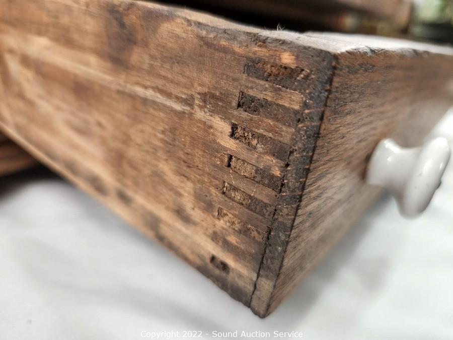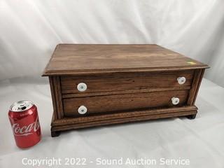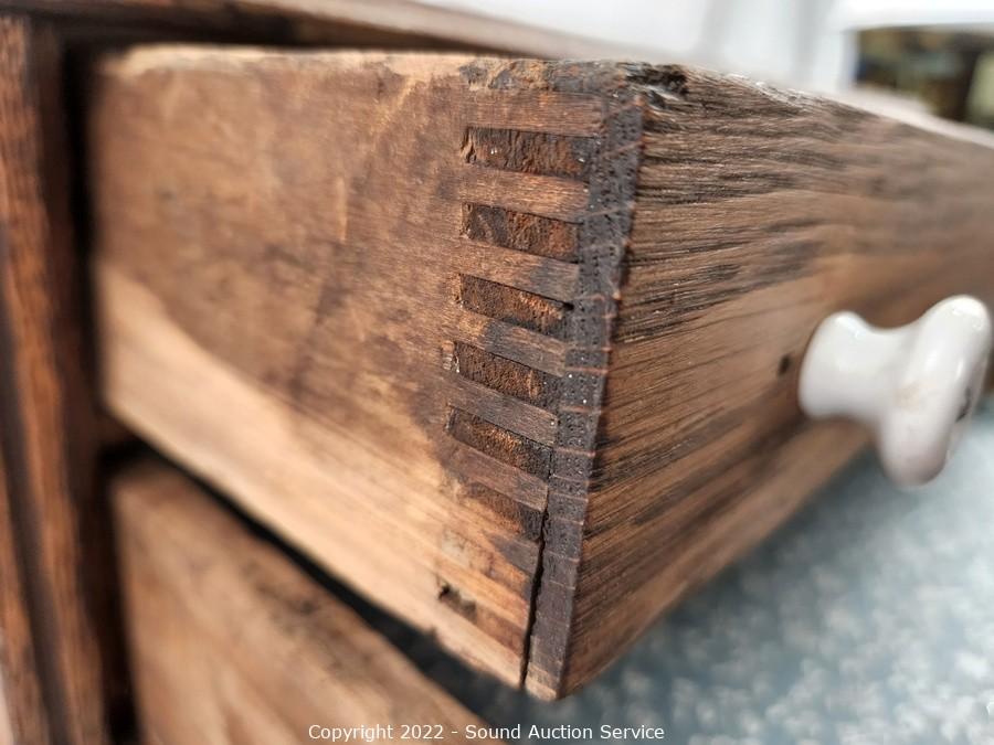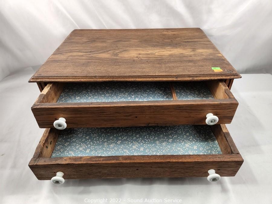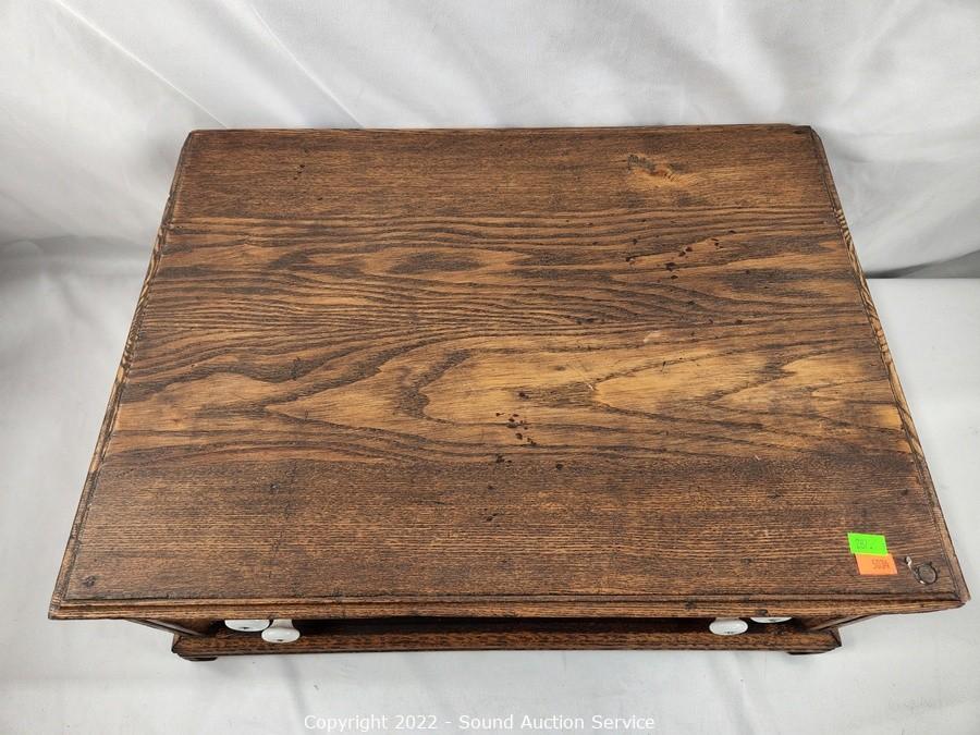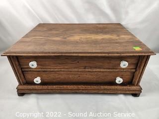 Lot #0287: Antique Oak 2-Drawer Oak Flatware Chest