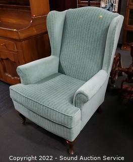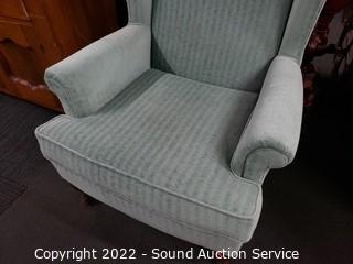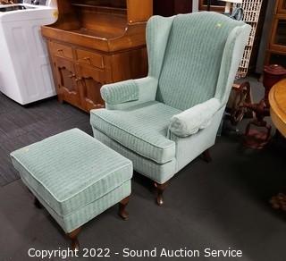 Lot #0092: Green Wingback Easy Chair w/Ottoman