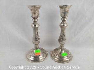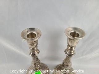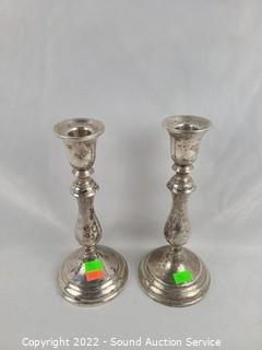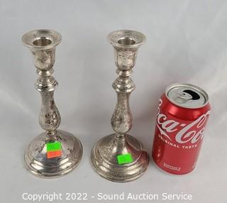 Lot #0113: Pair of Weighted Sterling 8" Candleholders