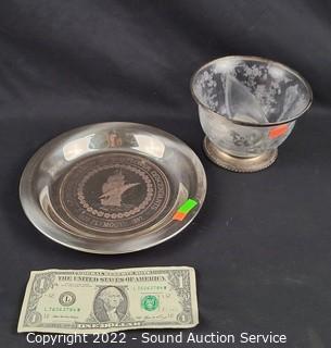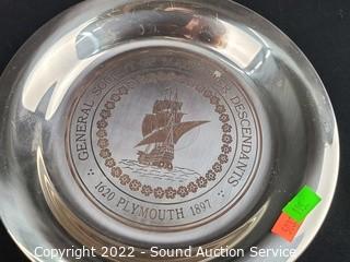Lot #0115: Silver Mayflower Descendants Plate & Bowl