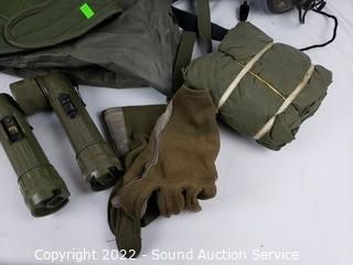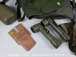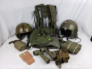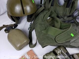 Lot #0277: 2 Military Flight Helmets, Canteen, Flashlights