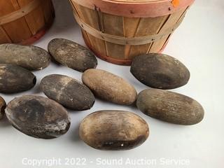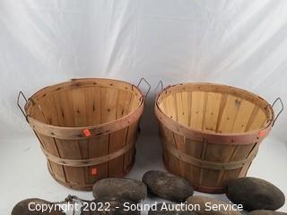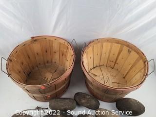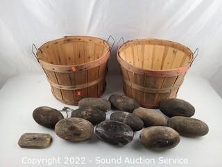 Lot #0127: 2 Wood Wove Fruit Baskets, Wood Rope Floats