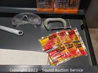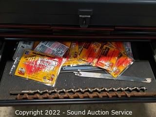 Lot Details: 15" H x 26" x 12". Ball bearing drawer guides, socket sets, auger bits & more. Refer to photos for lot contents.