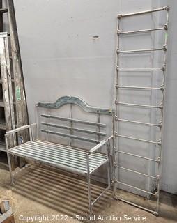 Lot #0070: Folding Wood Metal Base Bench & Trellis?