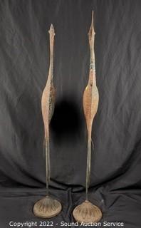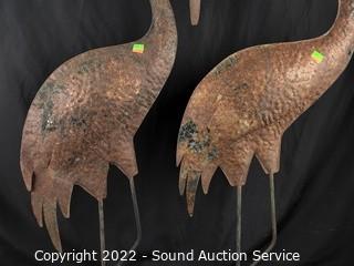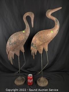 Lot #0409: Pair of Rustic Metal Art Flamingo Sculptures