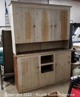 Lot #0297: Primitive Antique Rustic Hutch/Kitchen Cabinet