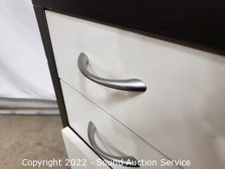 Lot Details: 1 file drawer, 2 utility drawers. 27.5" H x 14.5" W x 19.75" D. Has a ding on one edge, some dirty spots, no other issues.