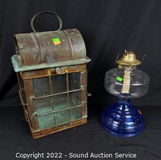 Lot #0227: Vtg. Oil Lamp, Candle Lantern