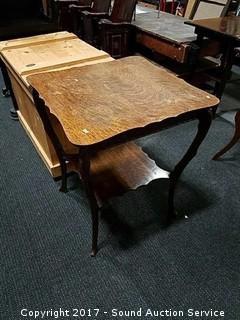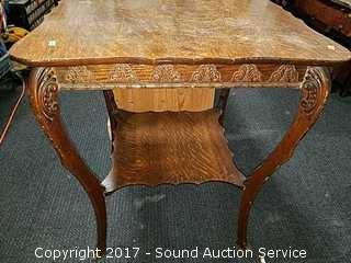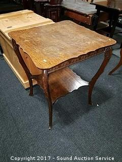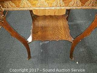 Lot #0106: Antique Ornate Tiger Oak Two Tier Side Table