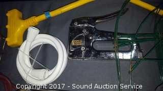 Lot #0124: Lot of Tools, Hardware & Garden Fencing