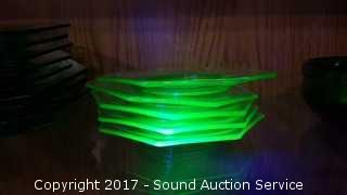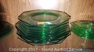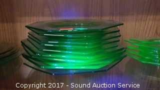 Lot #0024: Vaseline Glass Octagon Lunch Plates & Saucers