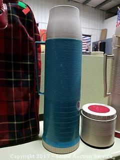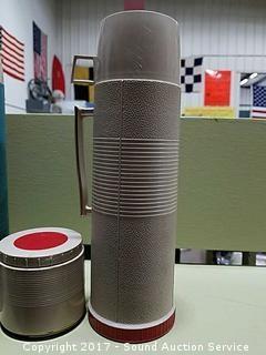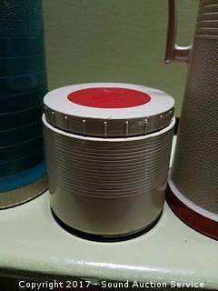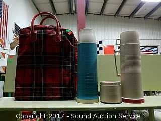 Lot #0202: Vtg. Thermos Coffee & Soup Mugs w/Plaid Case