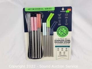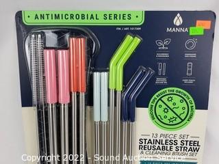 Lot #0231: 13pc Stainless Steel Reusable Straws