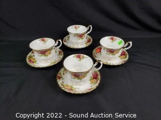Lot Details: 5pc service for 4. One cup is chipped, some of the trim is worn from use, no other issues.