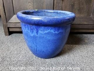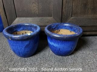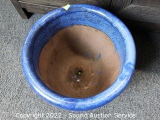 Lot #0131: 3 Blue Glazed Pottery Planter Pots