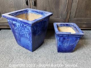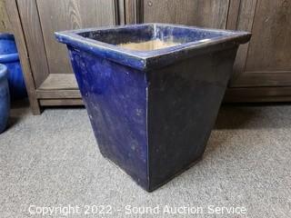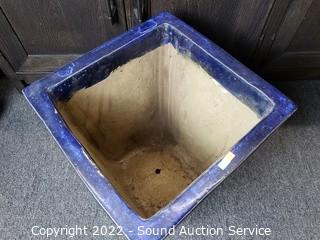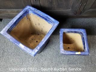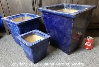 Lot #0133: 3 Blue Glazed Pottery Square Planter Pots