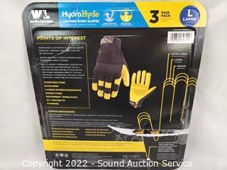 Lot #0180: 3pk Wells Lamont Hydra Hyde Work Gloves S:L