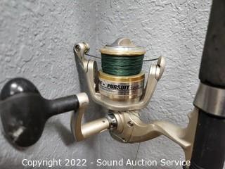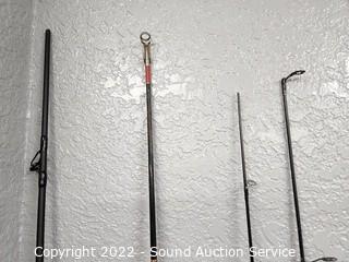 Lot Details: 2 have broken tips. Approx. 6.5ft rods. St. Croix & Eagle Claw Black Eagle intact, no issues. Penn Pursuit 5000 reel.
