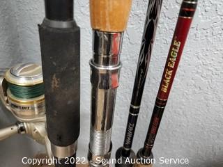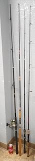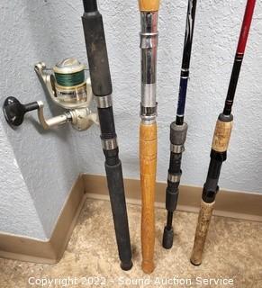Lot #0395: 4 Fishing Rods - 1 with Reel