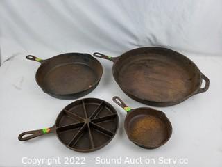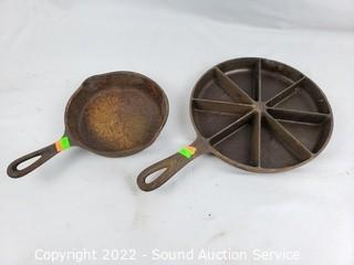 Lot #0146: 4pc Cast Iron Skillets, Cornbread Pan