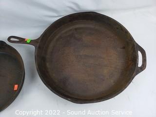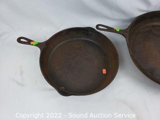 Lot Details: Wagner Ware 6-1/2" skillet, 9" Cornbread skillet, 15.5" Skillet.