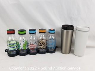 Lot #0205: 5 Reduce Bottles & 2 Thermos 18oz Travel Mugs