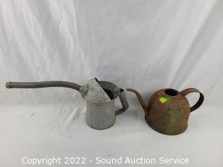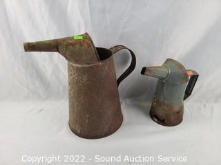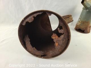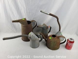 Lot #0053: 5 Rustic Yard Art Steel Oil Cans