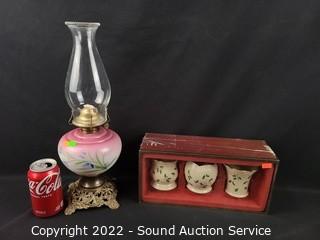 Lot #0371: Eagle Oil Lamp & 3pc Eagle Votives