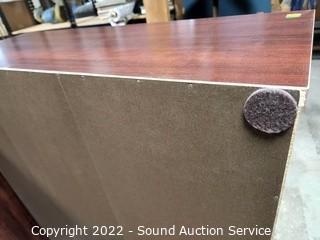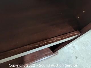Lot Details: One of the shelves face plates has some cracking, no other issues. Particle board construction, laminate finish.